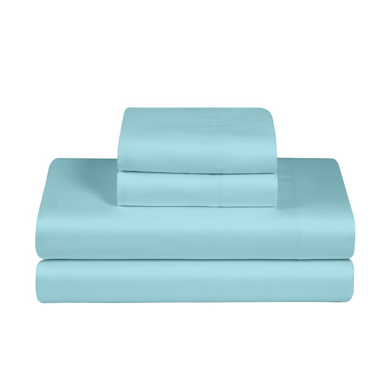 Feather & Stitch Softest 100% Cotton Sheets, 300 Thread Count Percale Weave Bedding, 16" Deep Pocket, Cooling Sheets, Breathable Bed Set, Hotel Premium Quality (Queen, Aqua)