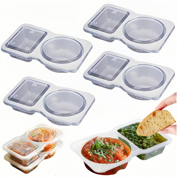 FeBohao 4 Pcs Double Compartment Condiment Container Reusable Snack Containers with Compartments Pack Sauce Container with Lids
