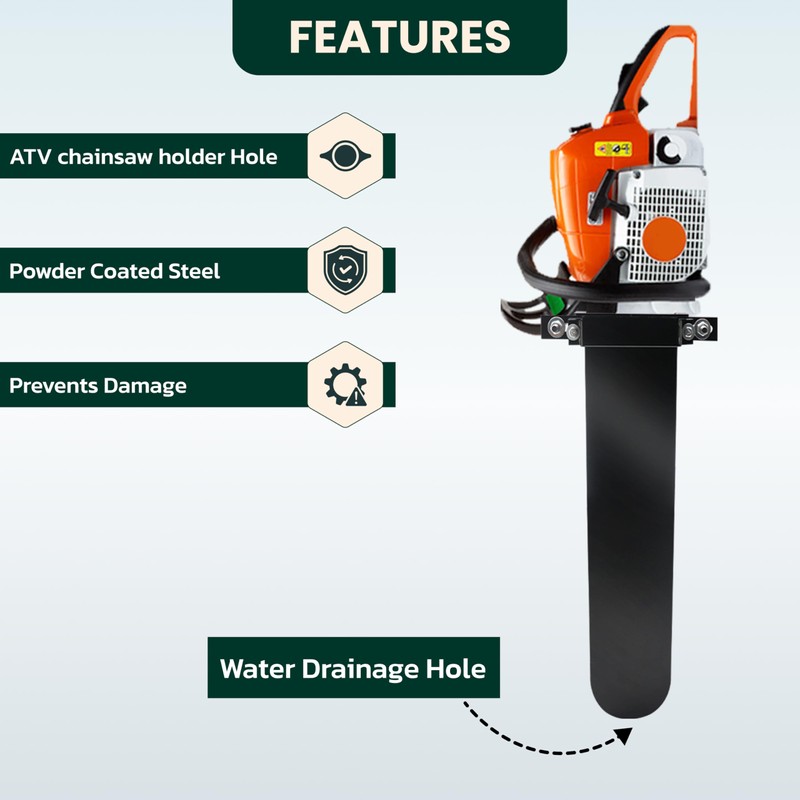 - Drainage Feature for Longevity: The ATV/UTV chainsaw holder includes a weep hole to prevent water accumulation, ensuring lasting durability. Ideal for chainsaw storage, it provides reliable year-round protection for your tools.