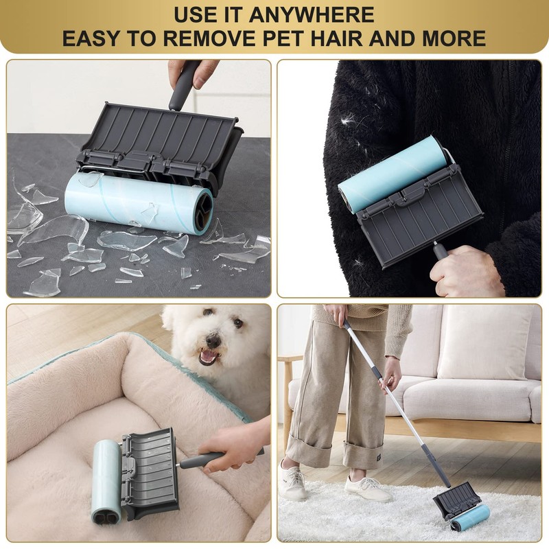 - MEGA VALUE SET 320 SHEETS: This large pet lint roller come with ergonomic handle and 4 lint roller refills, each large lint roller refill has 80 Sheets6.3' Wider ,that means you'll have a total of 320 sticky sheets in stock. Such economical value pack can be long lasting to meet your everyday clean needs. Better quality, higher cost performance.
