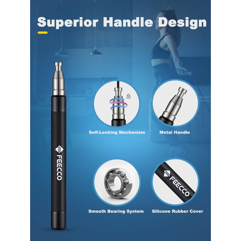 - Screw-Free Design for Hassle-Free Workouts - Say goodbye to loose screws that fall out just as you're getting your groove, the FEECCO Agile Pro speed rope is super easy to install the rope, and adjust the length to suit your height.
