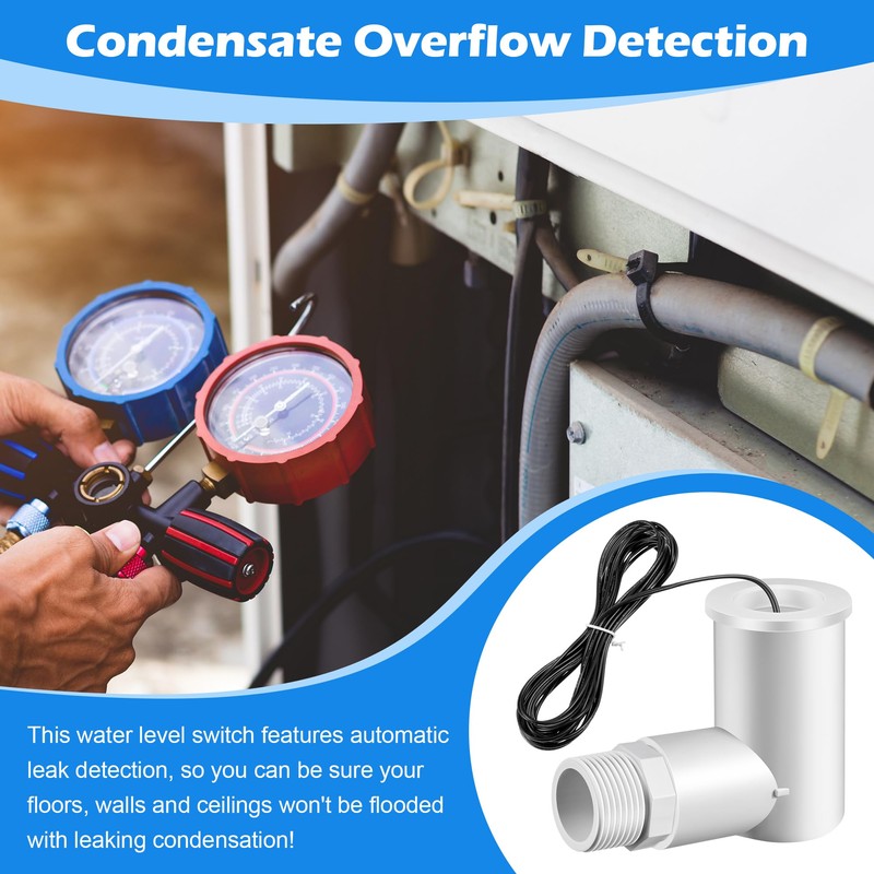 - Quality and Utility: this float switch is practical and useful; And because this water level switch has automatic leak detection, you can be sure that your floors, wall, and ceilings won't happen to be flooded with leaking condensate; Every home with an HVAC deserves a float switch HVAC, so you can use your HVAC without worrying about property damage due to condensation leaks