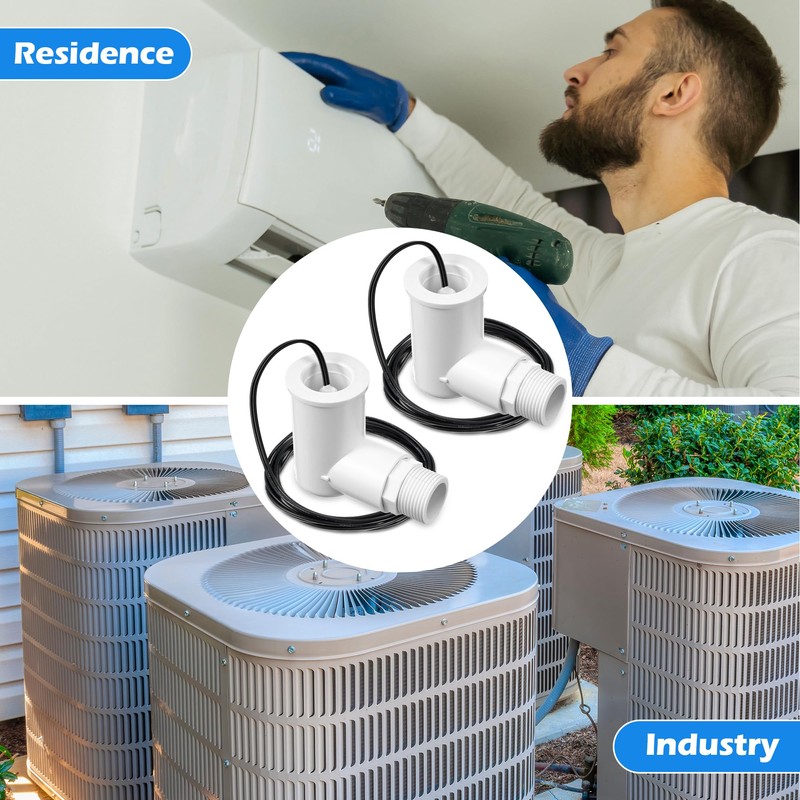 - Easy to Install: this 2 pack float switch HVAC is easy to install and can be successfully operated even by non professionals, all you need to do is install the 3/4 adaptor that comes with this AC float switch on the auxiliary drain outlet of primary pan and connect the 6ft wire to the VCC or thermostat wires; While this AC float switch HVAC is easy to operate, it definitely does its job, and you deserve such a simple yet powerful product