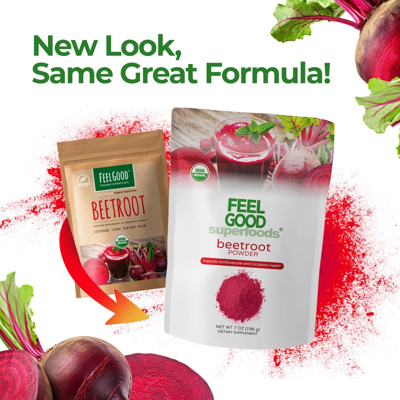 FEEL GOOD Feelgood Superfoods Fortified Organic Beetroot Powder - Nitric Oxide Booster for Cooking and Smoothies - Pure Beets with 10:1 Beet Root Extract - Supports Cardiovascular and Circulatory Health - 7 oz