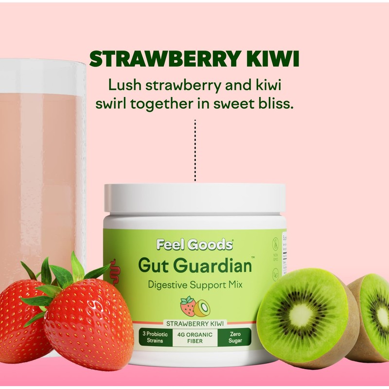 Feel Goods Gut Guardian, Organic Fiber, Probiotic & Prebiotic Powder, Sugar Free, Herbs for Bloat, Gut Health Support, Digestive Health for Men & Women, Non GMO, Vegan, Strawberry Kiwi, 30 Servings