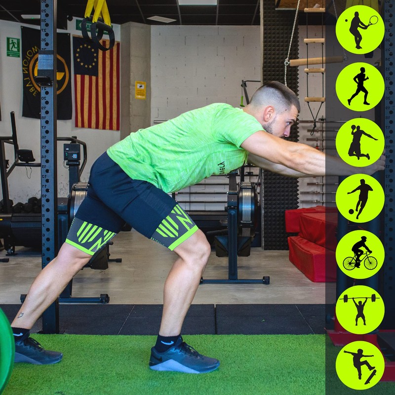 - Upper thigh pain – the thigh bandage compresses the leg muscles, both the hamstrings, the quadriceps and the adductors and thus supports recovery from injuries and relieves chronic or acute pain. Reduces the risk of injury by reducing muscle tension and improving blood circulation. Warm up the muscles, to relax and protect the thigh, to eliminate lactic acid and improve performance - ergonomic and adjustable