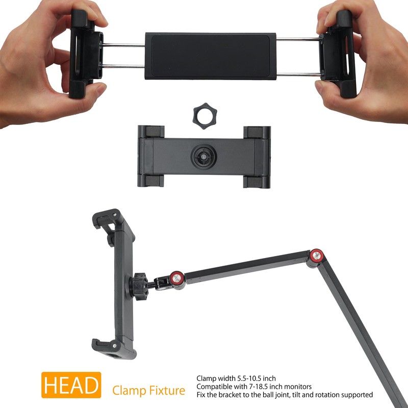 • 𝗥𝗼𝘁𝗮𝘁𝗮𝗯𝗹𝗲 𝗪𝗶𝗱𝗲 𝗦𝗽𝗿𝗶𝗻𝗴 𝗖𝗹𝗮𝗺𝗽: The FL15C's clamp can expand from 5.5 to 10.5 inches, making it capable of holding monitors up to 18.5 inches. The clamp is padded with foam to protect your device's edges. It's a versatile tablet stand for desk, perfect for your tablet, iPad, Kindle, or any size portable monitor, but it's not designed for phones. Once your device is mounted, it can rotate 360 degrees for easy use in both portrait and landscape modes, acting as a perfect Kindle holder or Kindle stand.