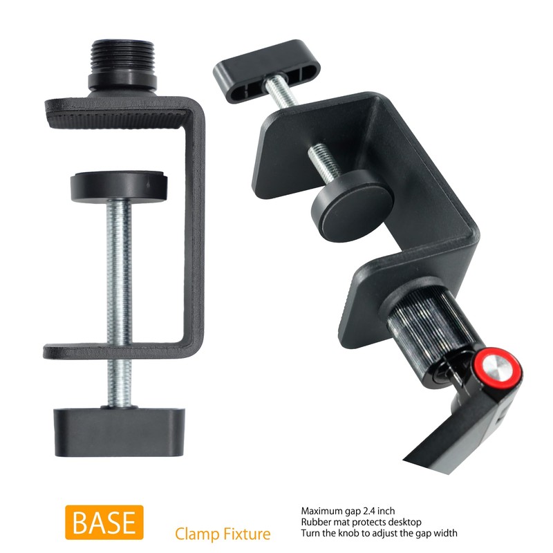 • 𝗡𝗼 𝗗𝗲𝘀𝗸 𝗦𝗽𝗮𝗰𝗲 𝗡𝗲𝗲𝗱𝗲𝗱: The biggest advantage of the FL15C tablet stand is that it doesn't take up any desk space! With a 2.4-inch wide clamp at the base, this iPad mount can be attached to the edge of your desk. If your desk is already crowded, the FL15C is perfect. It can also be clamped to other sturdy surfaces like chair arms, bookshelves, cabinets, and even your bed headboard, making it a versatile tablet stand for desk.