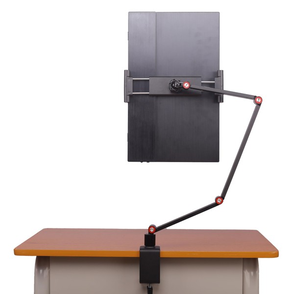 The FL15C tablet stand by FeeLazy is a space-saving solution with its clamp design that attaches securely to desk edges or other surfaces like chair arms and bed headboards, eliminating the need for desk space. Its wide, rotatable spring clamp accommodates devices up to 18.5 inches, padded for protection, and offers 360-degree rotation for versatile use. Featuring a flexible three-section arm adjustable up to 22.5 inches, it provides optimal positioning flexibility. While best for fixed setups due to its setup complexity, it pairs seamlessly with other FeeLazy stands for creating efficient multi-screen configurations. Ideal for tablets, iPads, Kindles, and portable monitors, it's the go-to choice for enhancing workspace productivity and entertainment setups.