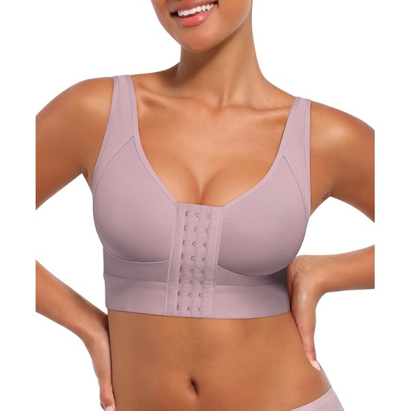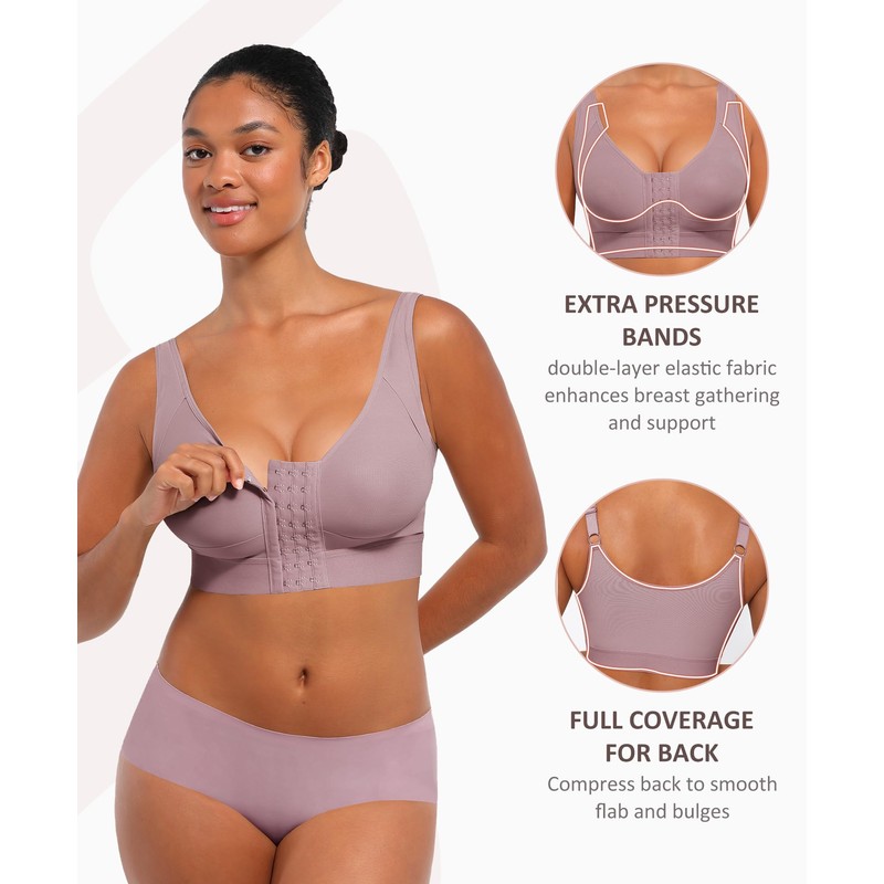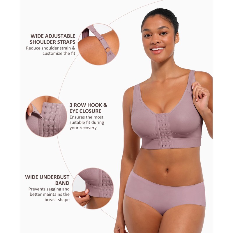 FeelinGir Front Closure Post Surgical Bra Post Surgery After Breast Augmentation Post Op Wirefree Compression Bra Purple
