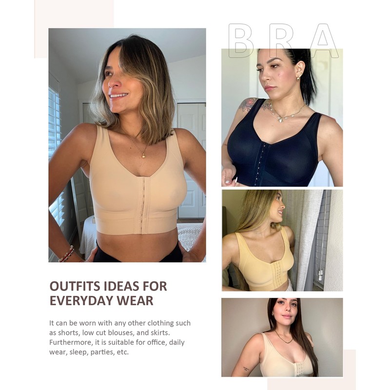 - EASY ADJUSTMENTS: Our shaping compression bra offers versatile adjustments to accommodate various cup sizes effortlessly. The front closure bra features three rows of adjustable hooks, allowing you to find the most suitable fit during your recovery. The wide shoulder straps gently distribute pressure to reduce shoulder strain, and the adjustable straps allow you to customize the fit, ensuring a more personalized and comfortable experience for your bust.