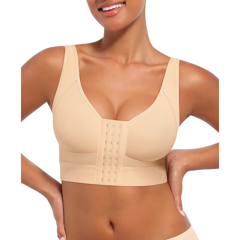FeelinGirl Post Surgery Compression Bra Front Closure Bras for Women with Adjustable Straps Post Surgical Skin