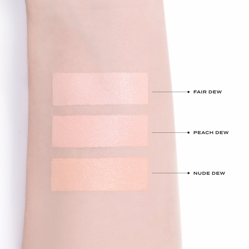 [COLOR_FEATURE] 01 Fair Dew: Neutral Ivory for No. 17-19 foundation users. Light ivory for a clear dewy skin look. 02 Peach Dew: No. 21 foundation users with cool undertones. Bright pinkish shade for a lovely sun-kissed look. 03 Nude Dew: Yellowish beige with less red and yellow. For No. 21 foundation users with warm undertones for a naturally luminous look.
