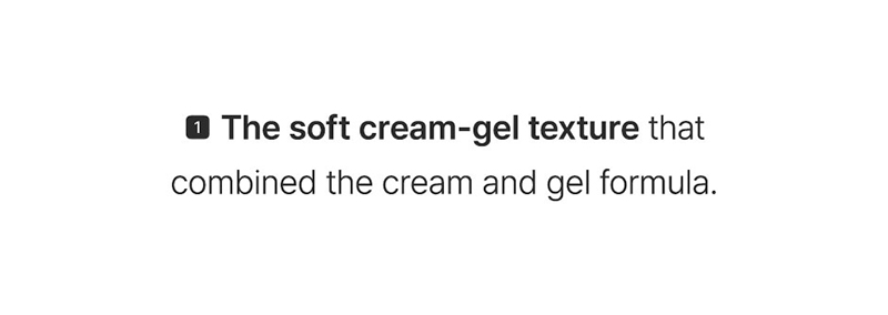 Soft cream to gel texture made with optimal ration of 42% skin conditioning ingredients, powder, gel, and oil.