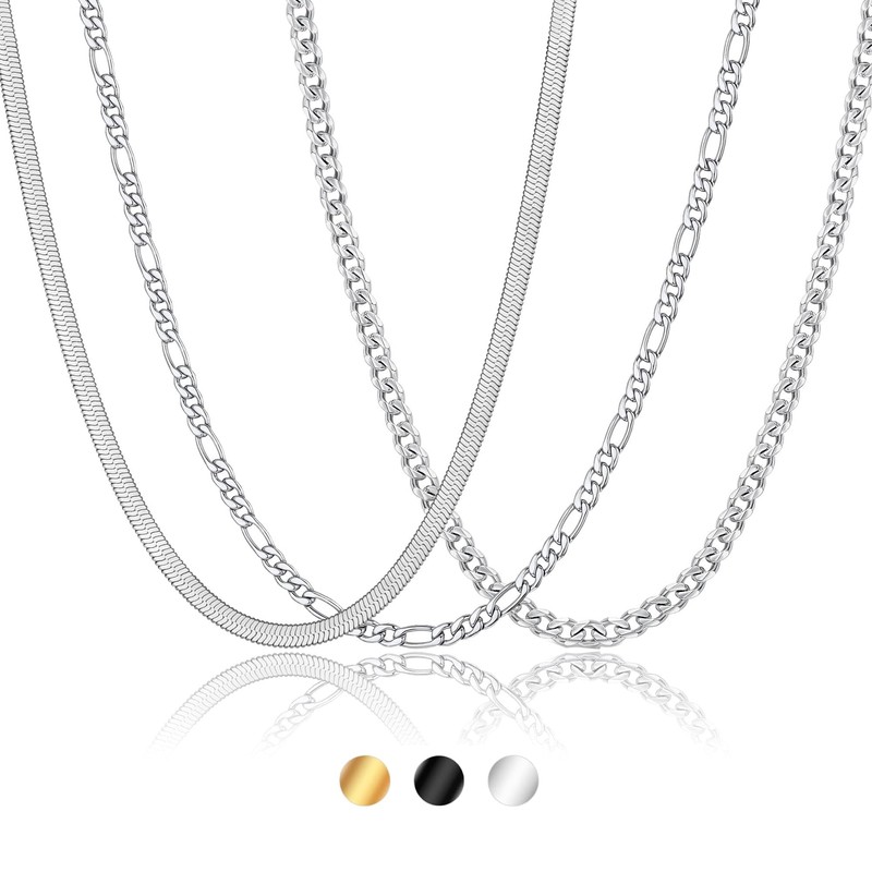 Fehki 3 x men's stainless steel chain set, 316L necklace for men, silver, gold, black, chain jewellery for men, 16/18/20/22/24 inches, Stainless Steel, No Gemstone