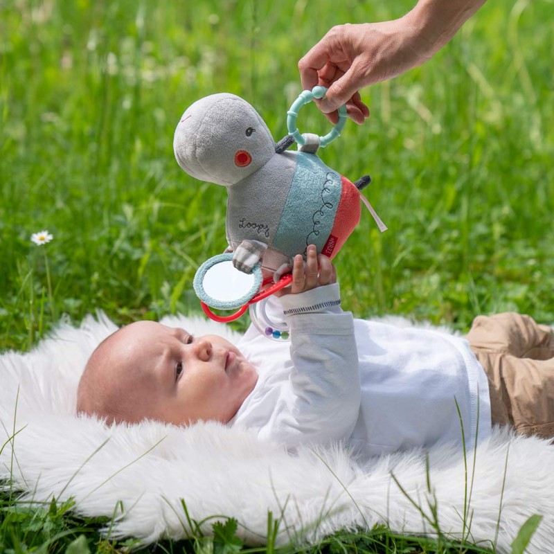 - Gentle colour accents and different pendants invite you to play and explore: with the rattle and gripping ring, you can test the sense of touch and grip and the soft teether helps with teething