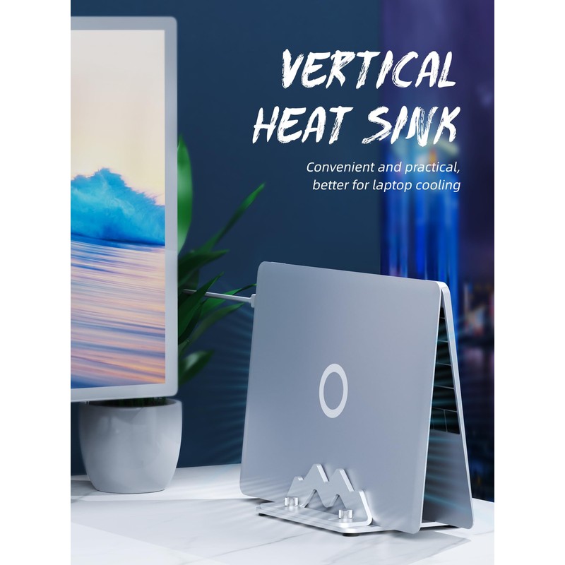 - 3. Secure Stability: Equipped with embedded silicone pads, this stand protects your laptop from scratches and prevents slipping. A weighted base ensures stability and prevents tipping.