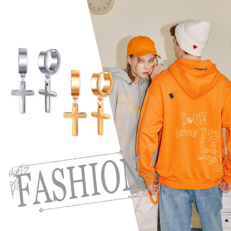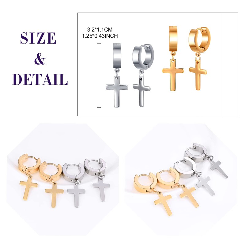 Feilok 2/3 Pairs of Hoop Earrings for Men Women Stainless Steel Stud Earrings Huggie Earrings Set Cross Hinged Cross Earrings Dangle Folding Earrings, Stainless Steel