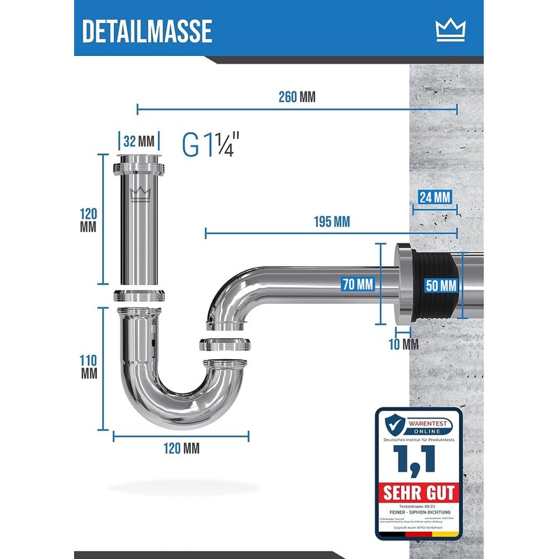 Whether for renovation, replacement or new installation - with this siphon set you have the ideal solution for your bathroom.