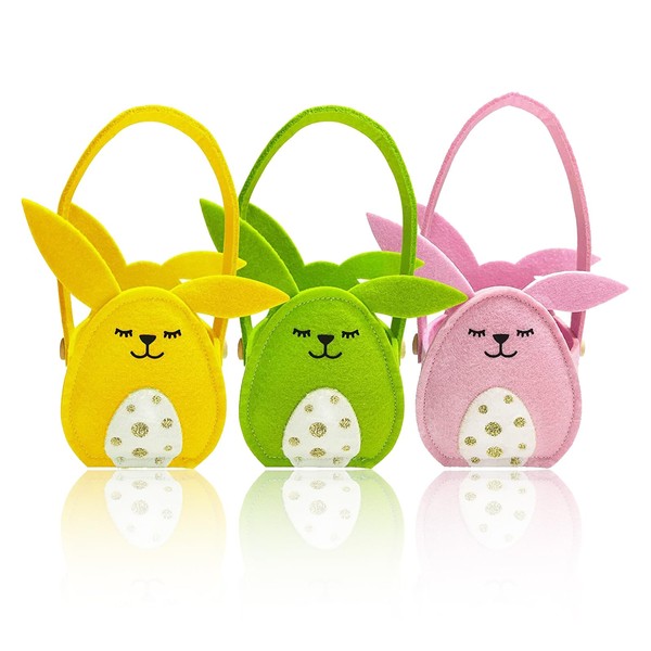 FeiOne Pack of 3 Easter Baskets Felt Easter Bunnies, Easter Basket Children with Handle, Easter Nest Craft Rabbit, Easter Decoration, Easter Gift Bags, Easter Decoration, Easter Baskets, Craft Items