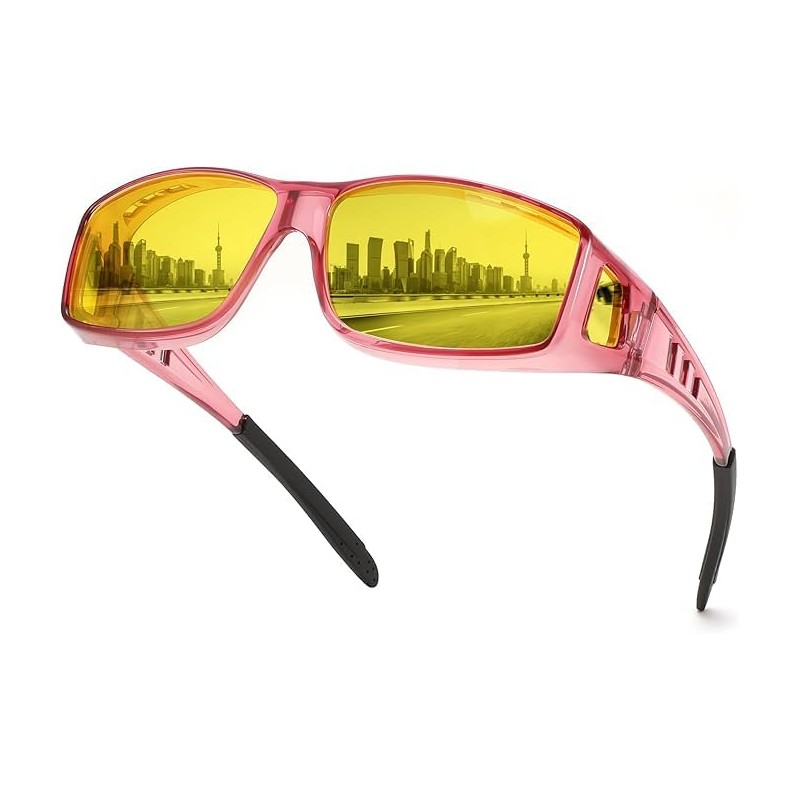 Feisedy B0225 Over Sunglasses, Large Size, TAC Polarized, UV400, UV Protection, Night Sunglasses, For Night Driving, Yellow Lens, Unisex, purple