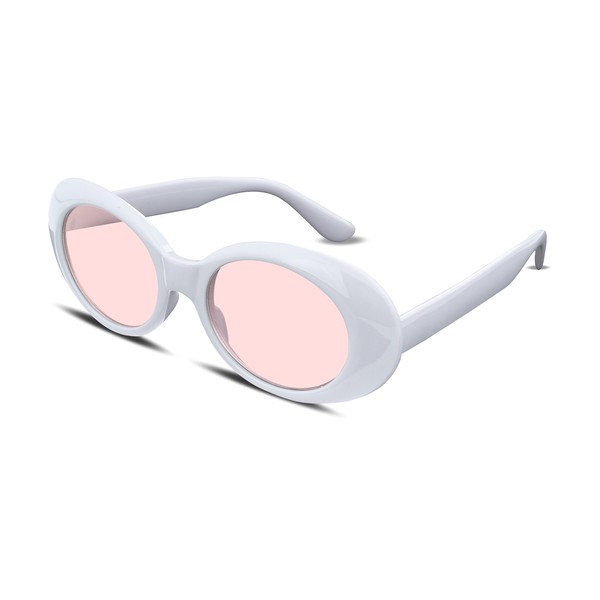 [FEISEDY] オーバル サングラス レディース レトロ クラシック メンズ サングラスファッション B2253 (ホワイトピンク)