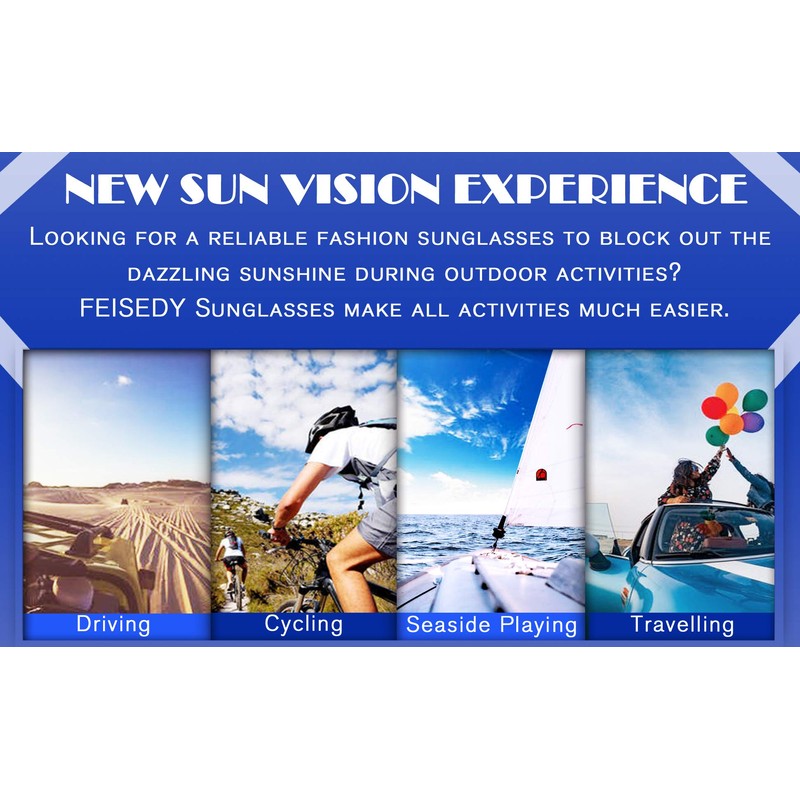 - On all occasions, FEISEDY sunglasses are brilliant. FEISEDY not only focused on fashion, we are more concerned about the quality of products.