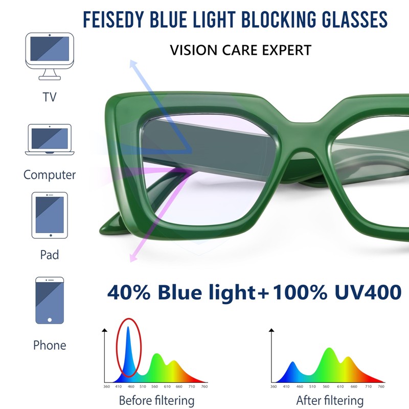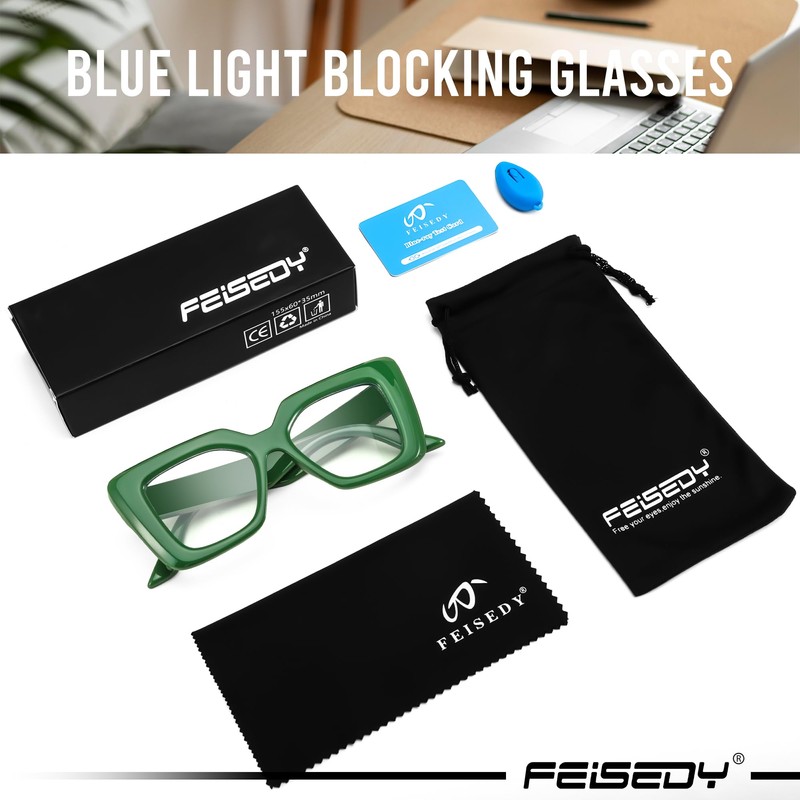 FEISEDY Oversized Square Blue Light Blocking Glasses for Women Men Fashion Computer Glasses Reduce Eye Strain B0111