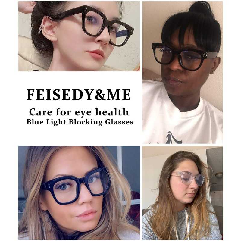 - FEISEDY Blue Light Blocking GLASSES - Whether it’s your computer at work, your TV at home, or even your mobile phone, most of us spend most of the day watching the screen. This can cause eye strain, leading to sore eyes and headaches at the end of the day. FEISEDY Blue light blocking lenses Protect your eyes from the harsh blue light of our daily equipment.