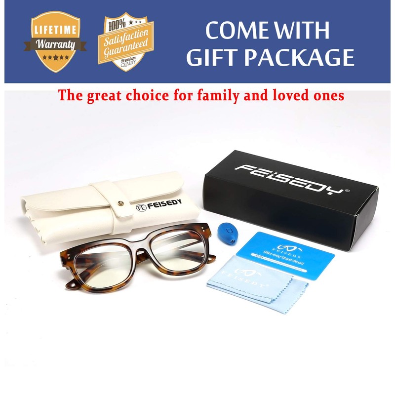 - FEISEDY Reading Glasses - Classic Brand Design Square Thick Frames make you more stylish. Nice quality frame, Accurate presbyopia degree, Block blue light Lenses, Protect eye health light, perfect for eye protection while reading, sticking to eye health. Great choice for better life.