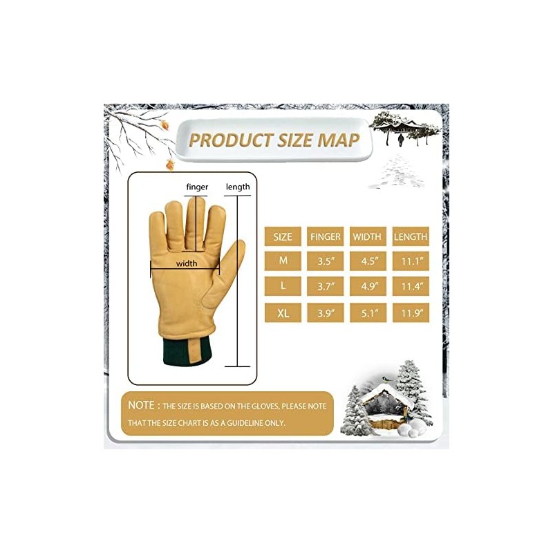 - Thermal work gloves: the inside of the winter work gloves for cold weather is made of thermal cotton and offers superior heated and comfort in cold weather that forms a barrier that blocks ice, moisture and wind.