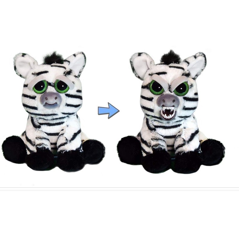 Zebra: Idiotic Ian has an endearing resting face and is great for cuddle time. His animated alter ego is fun for play and to give your friends a startling surprise.
