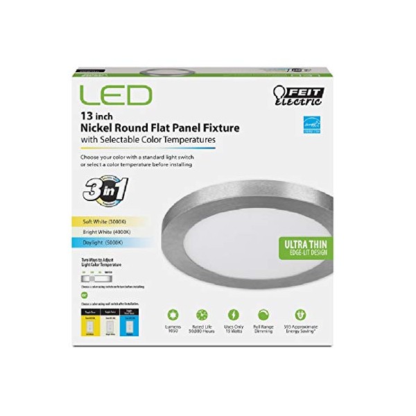 FEIT Electric 13 in. W Nickel LED Flat Panel Light Fixture