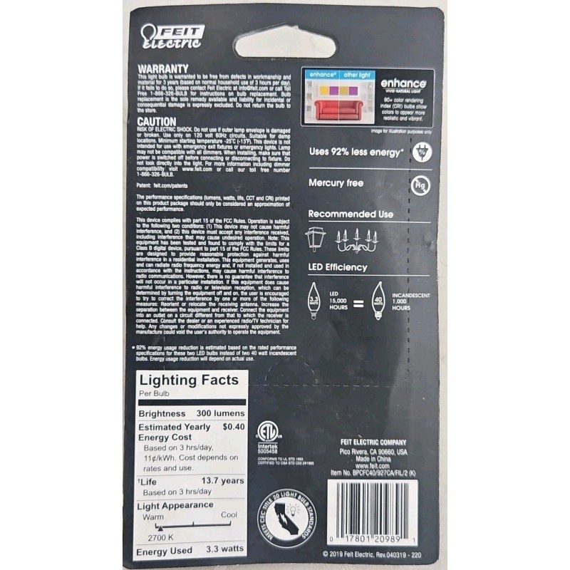 - Model: Feit BPCFC40/927CA/FIL2