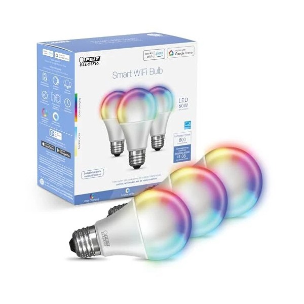 Feit Electric RGBW Smart Light Bulb WiFi Enabled 3 Pack Voice Control with Alexa Google Home