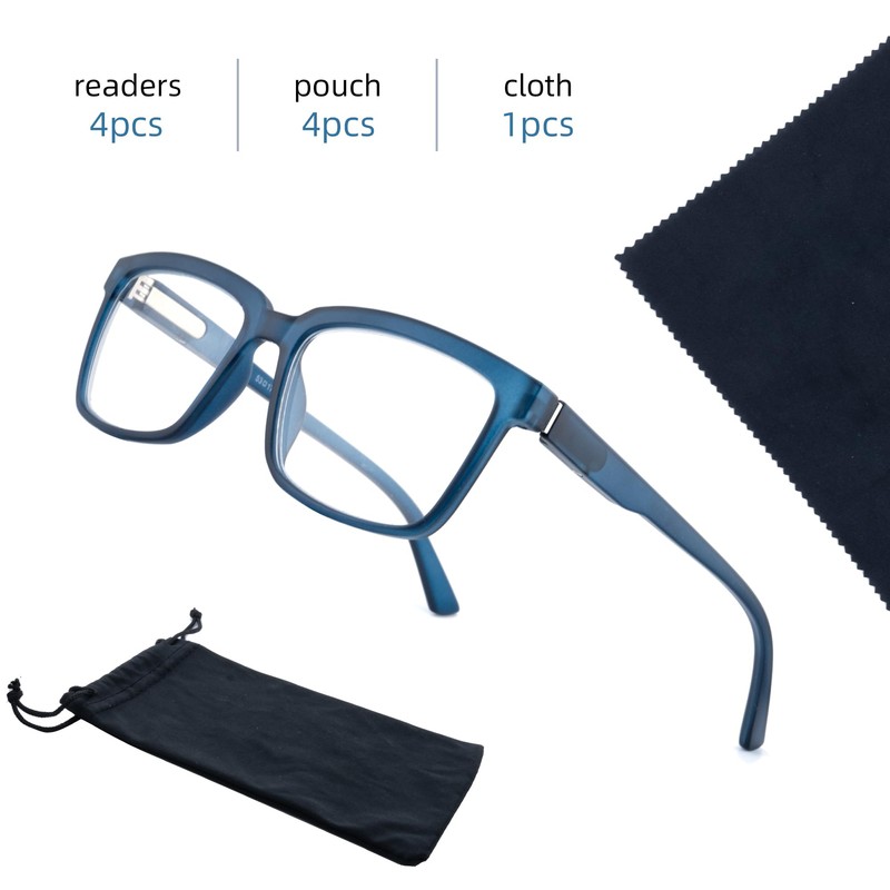 - 【Package Includes】 Rectangular Reading Glasses * 4, microfiber pouch * 4, microfiber glasses cleaning cloth * 1, glasses box * 1.