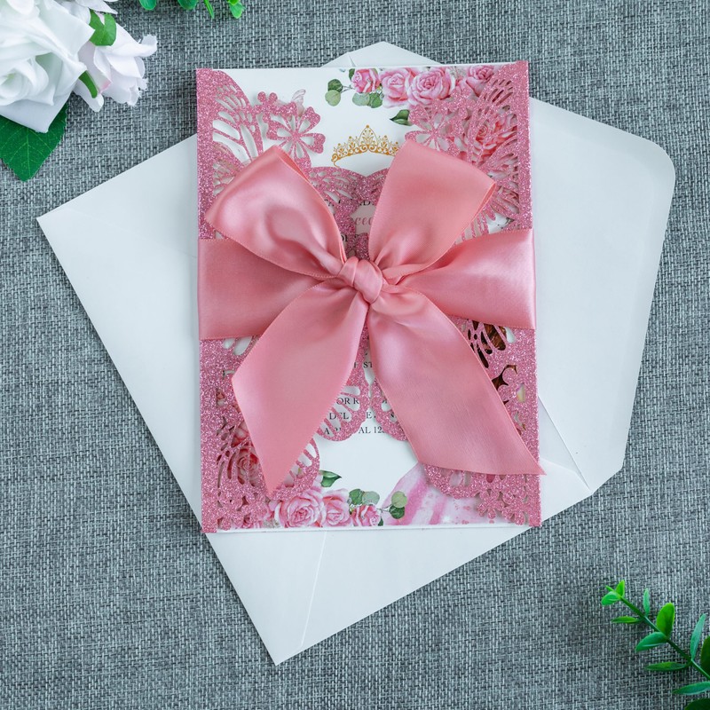 - Package include: 20 x Envelopes, 20 x Laser cut invitation cards, 20 x Blank inner sheets, 20 x ribbons.