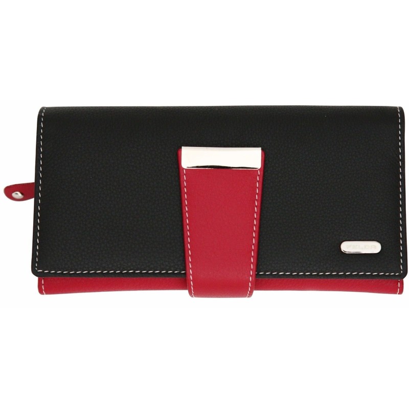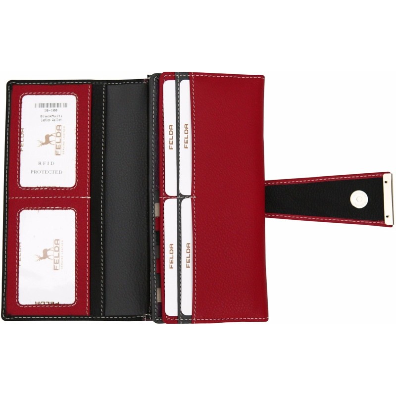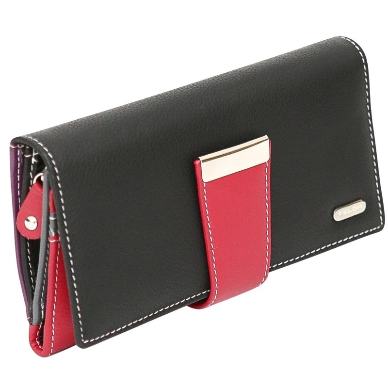 Felda Ladies Genuine Leather Soft Purse - Zipped Coin Compartment and 24 Card Slots - Black Multi