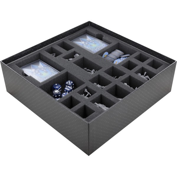 - The set consists of 2 Feldherr foam trays for miniatures and small game material, suitable for the original box. 2 plastic inserts for cards and tokens are also included. Plus the matching foam topper.