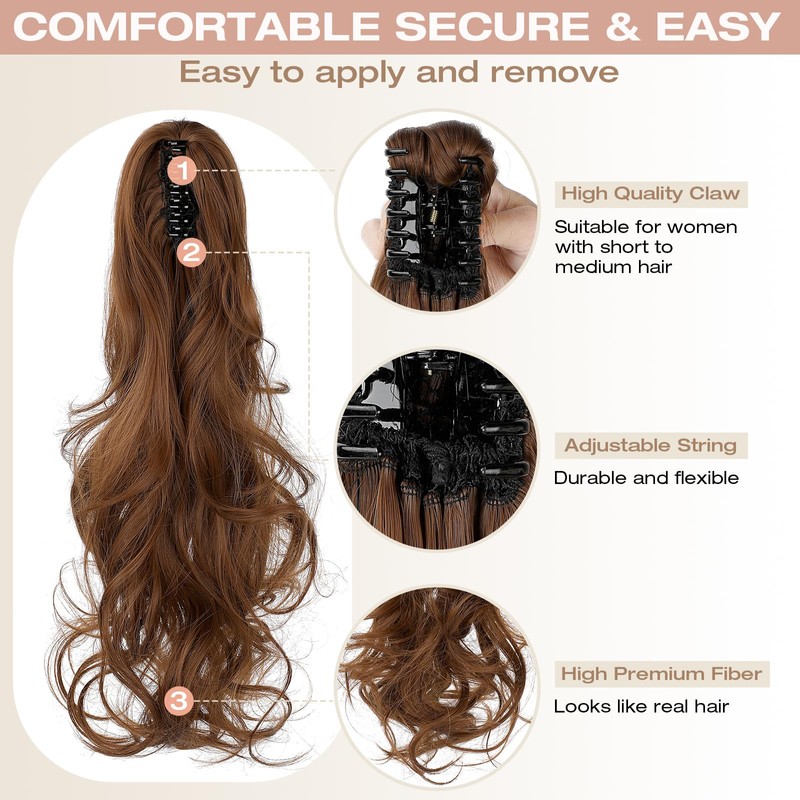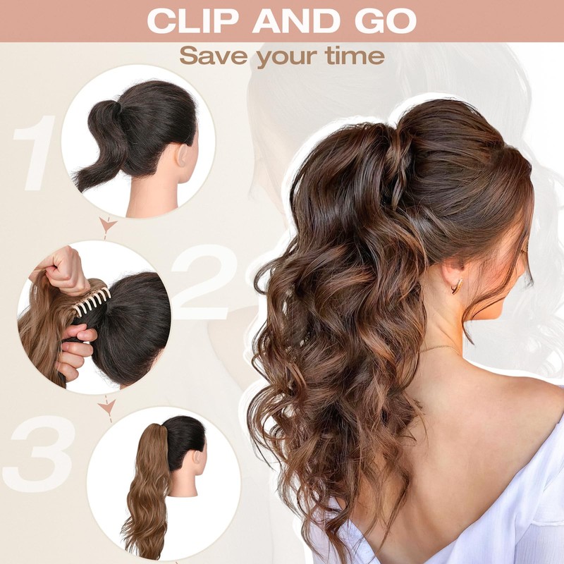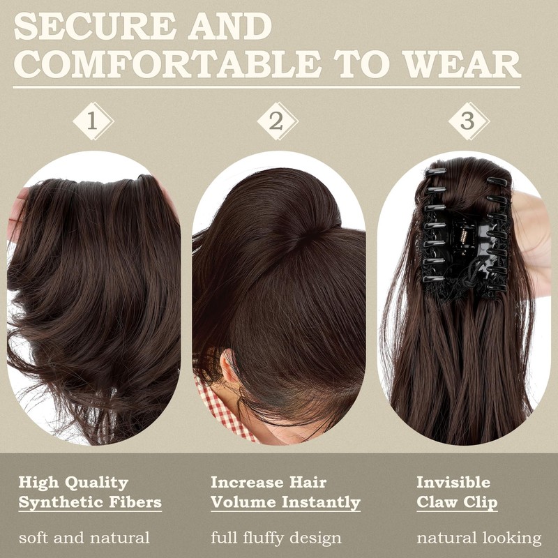 Step 2: Attach the Clip:Attached by a Jaw/Claw Clip over your Ponytail until Holding it Securely in Place.
