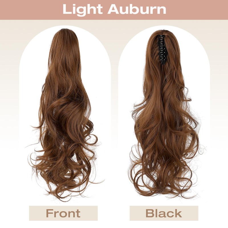 Felendy Ponytail Extension, 18" Claw Clip in Ponytail Extensions Curly Wavy Ponytail Hair Extension Jaw Clip on Long Pony Tails Hairpiece for Women Synthetic Light Auburn