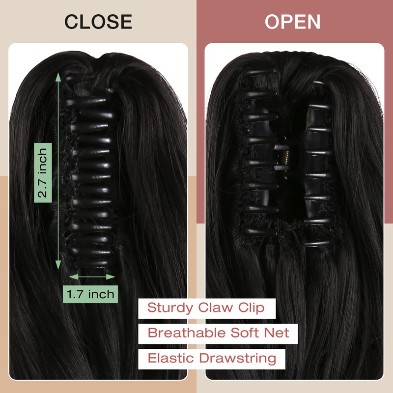 - Super Easy to Put in and Style: It only takes less than 1 minute to secure the claw clip to your liking. Glamourous hair in a snap.Make you feel like a princess in an instant when wear it.Soft touch like natural real hair.Your secure and best attachment for all day wear.