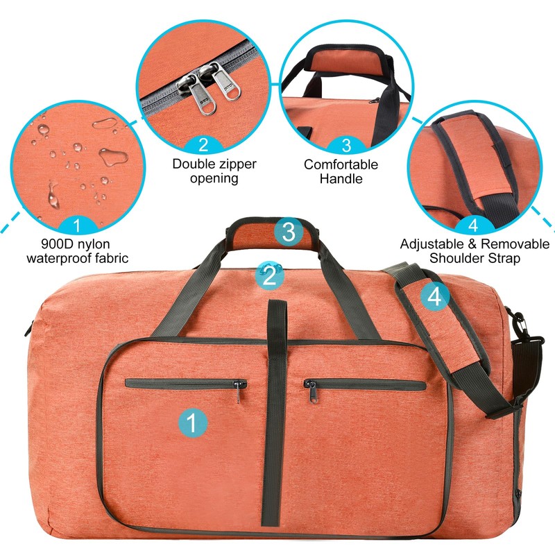 Felipe Varela 150L Duffle Bag with Shoes Compartment, Foldable Waterproof Travel Duffel Bags Duffle Overnight Weekend Travel Gym Bag for Men Women(Orange)