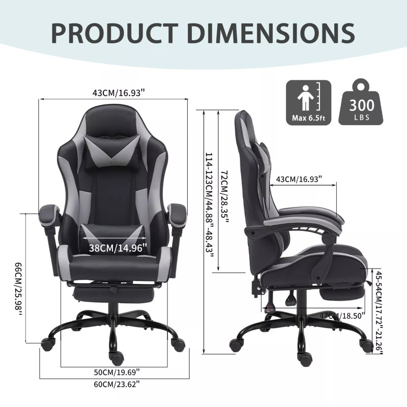 【Ergonomic Design】 Strong metal frame designed to help promote a comfortable seated position, keeping you comfy after long hours of game or work.The retractable footrest is nice and sturdy. It is convenient for relaxing your leg and reducing fatigue.