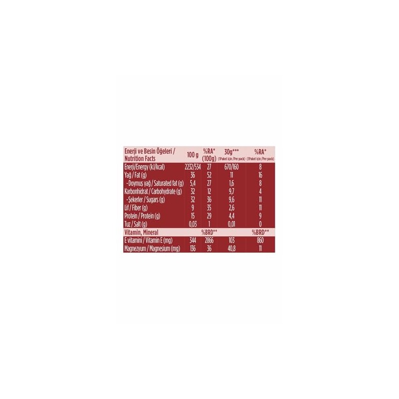 - Alerjen: Yer fıstığı, badem ve fındık içerir