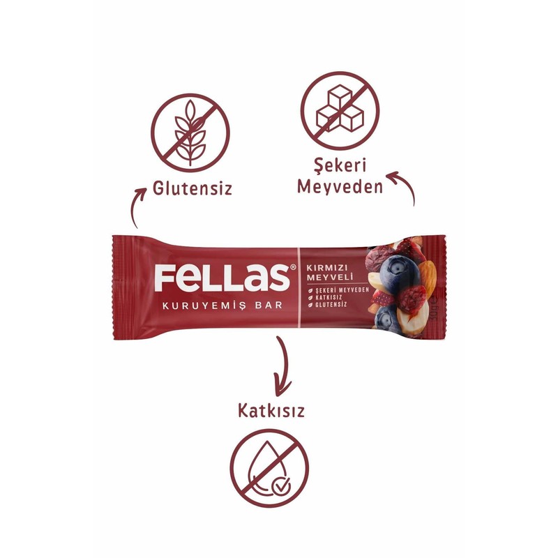Fellas Kırmızı Meyveli Kuruyemiş Bar 30 gr x 12 Adet