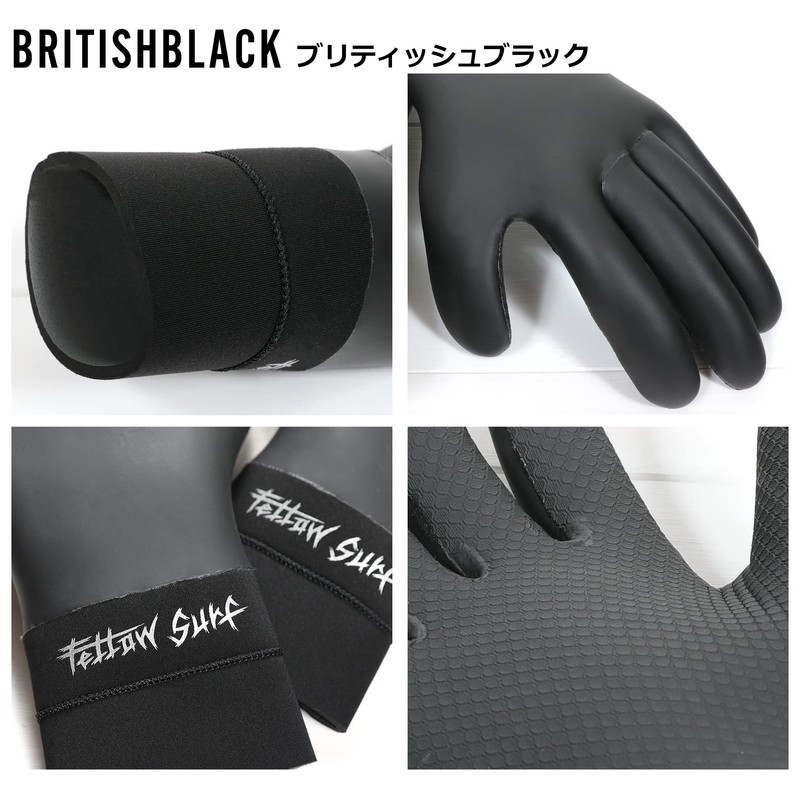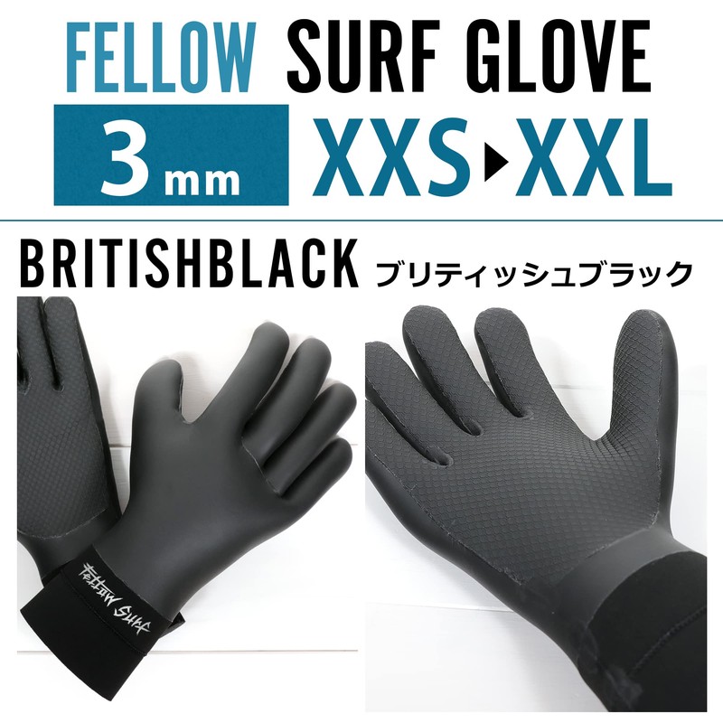 FELLOW Surf Gloves, 0.1 inch (3 mm), Surfing Skin, Waterproof, Cold Protection, Winter, Neoprene, Fleece-Lined, Thermal Wetsuit, Japanese Standards, British Black, ML Size