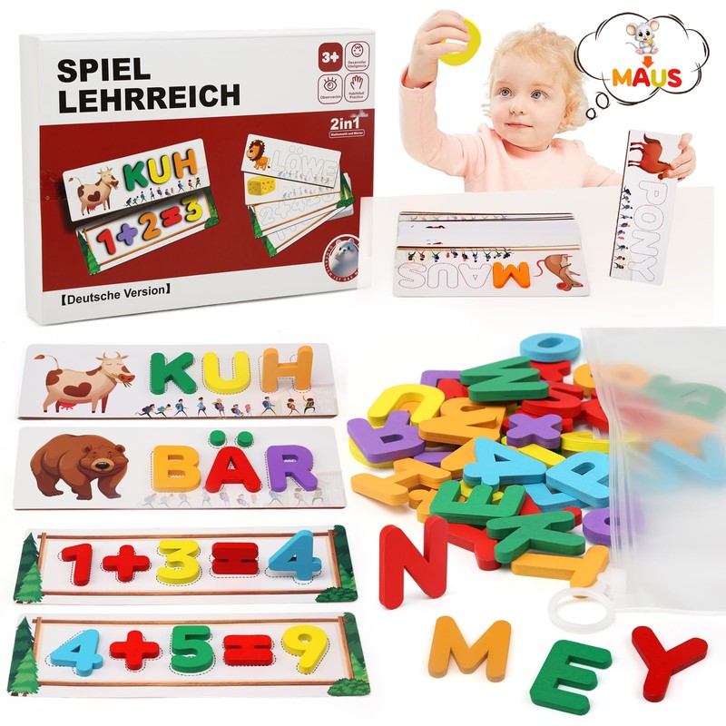 Felly Lernspielzeug ab 3 4 5 Jahre, Montessori Spielzeug Deutsch Arithmetisches Buchstaben Lernen Lernspiele, Vorschule Alphabet Spiele Einschulung Junge Mädchen Kinder, Weihnachten Geschenk Kleinkind
