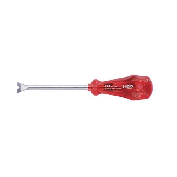 Felo cellulose-acetate screwdriver handle, with a patented micro-textured quartz finish, features non-slip and maximum grip even when used with greasy hands. Handles are ergonomically designed for heavy-duty use. This handle is free of cadmium providing high impact resistance and exceptional durability. The tack claw lifter blade is made of chrome-molybdenum-vanadium steel.