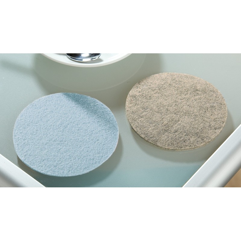 100 and polyester. Dimensions: diameter 10 cm, thickness: 3 mm. Box contents: 4 pieces. Washable at 30 °C